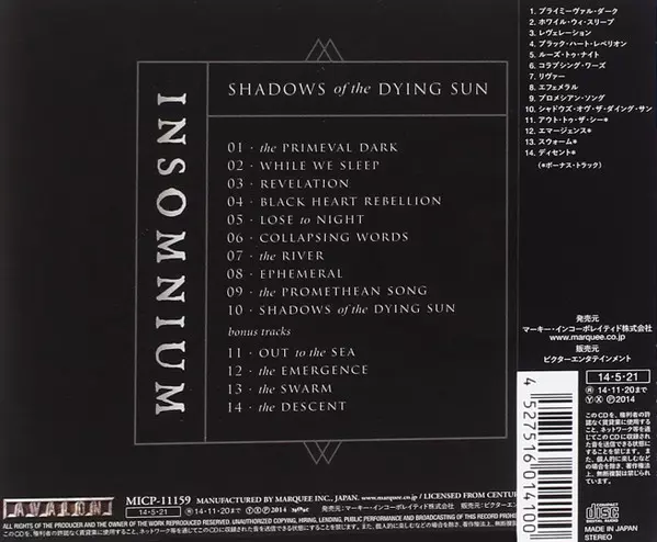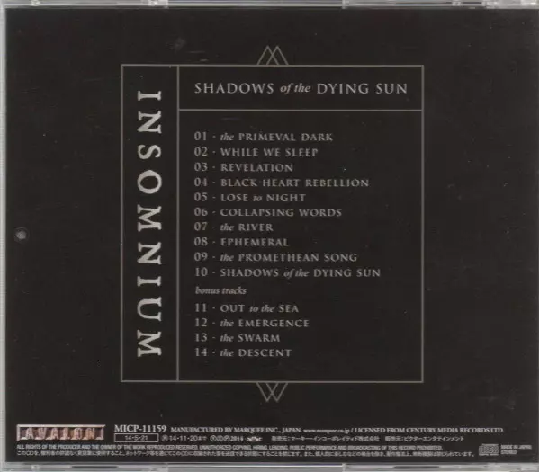 Insomnium Shadows of the Dying Sun is an album that was released in 2014. It is a melodic death metal album that was positively reviewed by critics. The album has a dark and melancholic feel and the lyrics are written in a way that reflects this. The album was produced by Jens Bogren, who has worked with other metal bands such as Amon Amarth and Opeth.