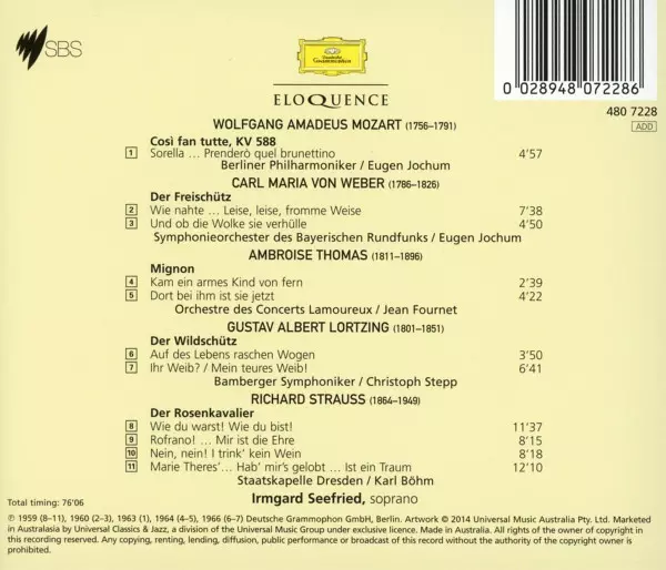 | Artist | Wolfgang Amadeus Mozart | Richard Strauss | Carl Maria von Weber | Irmgard Seefried | Albert Lortzing | Ambroise Thomas |