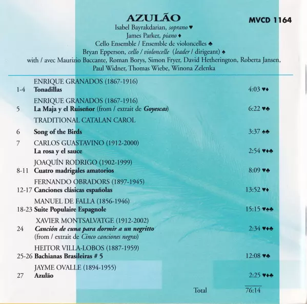 | Artist | Isabel Bayrakdarian | James Parker | Cello Ensemble |