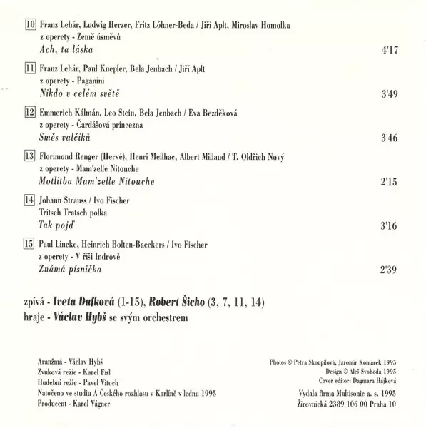 Václav Hybš Orchestra: Zlaté Hity Operety version on CD in Standard edition. This particular edition was published in Czech Republic in publishing company Multisonic year 2008. Album spans genres Pop, Classical and Operetta.