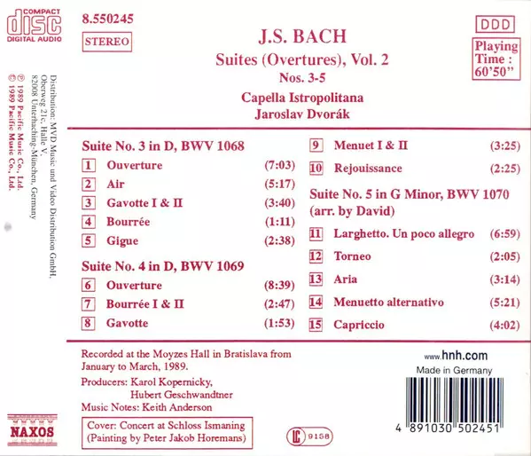 | Title | Suites (Ouvertures), Vol. 2 Nos. 3-5 (BWV 1068-1070) |