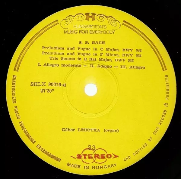 Artist | Johann Sebastian Bach | Gábor Lehotka |