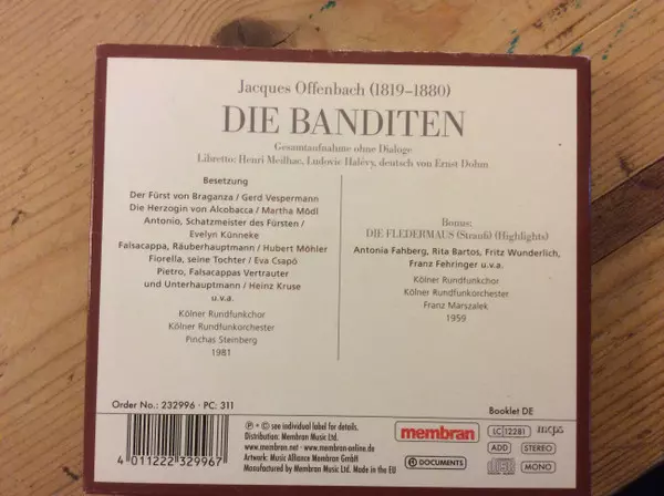 Jacques Offenbach: Die Banditen version on 2CD in Standard edition. This particular edition was published in Germany in publishing company Documents on 23. June 2010. Album spans genres Classical and Operetta.