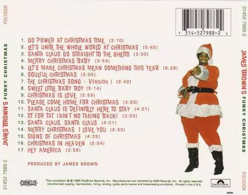 James Brown: Funky Christmas version on CD in Remastered edition. This particular edition was published in USA in publishing company Polydor in cooperation with Chronicles on 3. October 1995. Album spans genres Funk / Soul, Soul, Funk and Holiday.