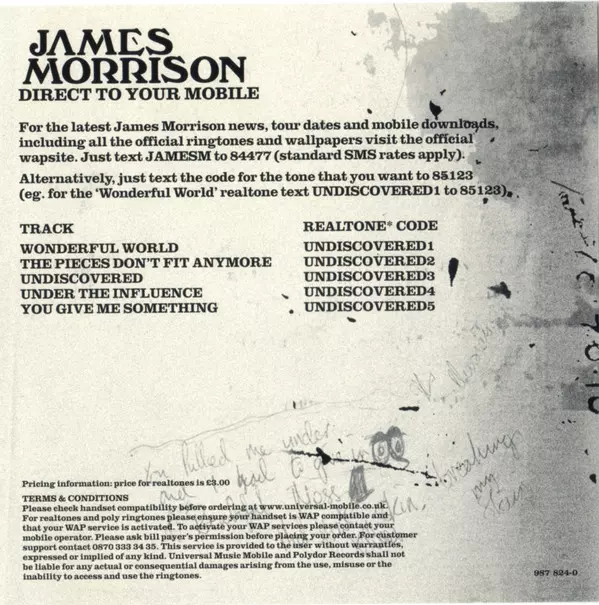 James Morrison: Undiscovered version on CD in Standard edition. This particular edition was published in Europe in publishing company Polydor on 7. October 2013. Album spans genres Rock, Pop Rock and Soft Rock. + Bonus Track.