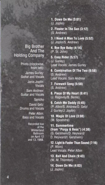 | Artist | Janis Joplin | Big Brother & The Holding Company |
