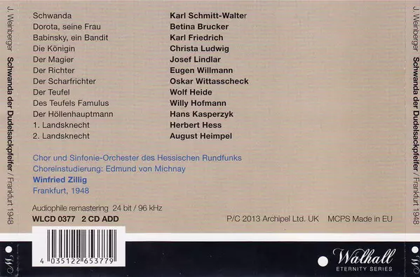| Artist | Christa Ludwig | Jaromir Weinberger | Karl Schmitt-Walter | Betina Brucker | Karl Friedrich | Winfried Zillig |