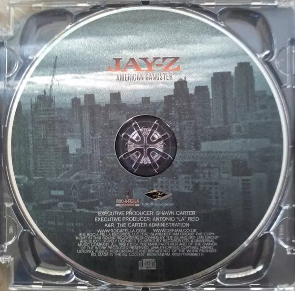 Jay-Z: American Gangster version on CD in Standard edition. This particular edition was published in Europe in publishing company Roc-A-Fella Records on 9. November 2007.