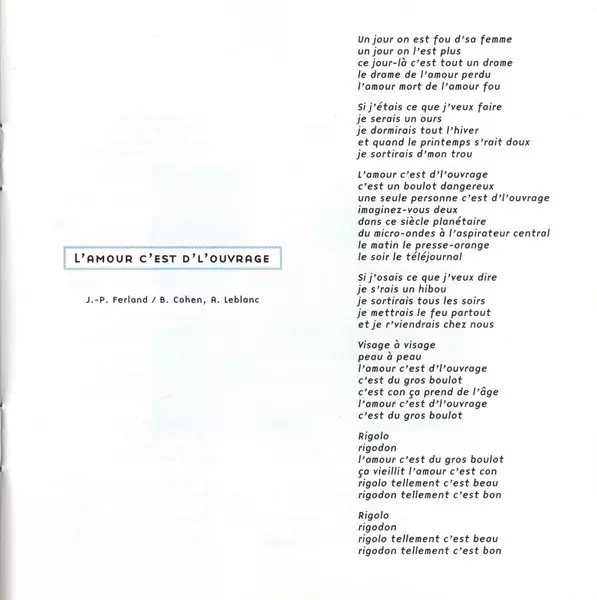 | Title | L'Amour C'Est D'L'Ouvrage |