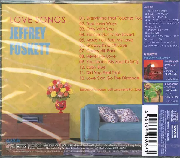 Jeffrey Foskett: Love Songs version on CD in Standard edition. This particular edition was published in Japan in publishing company Vivid Sound on 24. July 2019. Album spans genres Rock, Pop Rock and Surf.