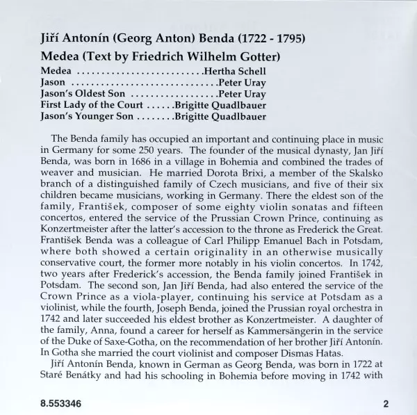 | Artist | Prague Chamber Orchestra | Georg Anton Benda | Christian Benda | Brigitte Quadlbauer | Peter Uray | Hertha Schell |