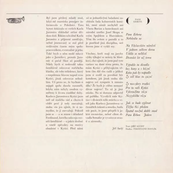 | Artist | Jiří Suchý | Karel Jaromír Erben | Ferdinand Havlík |