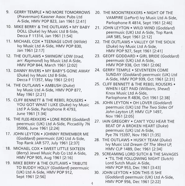 | 2-10 | Mike Berry, The Outlaws: My Baby Doll | 1:57 min | |