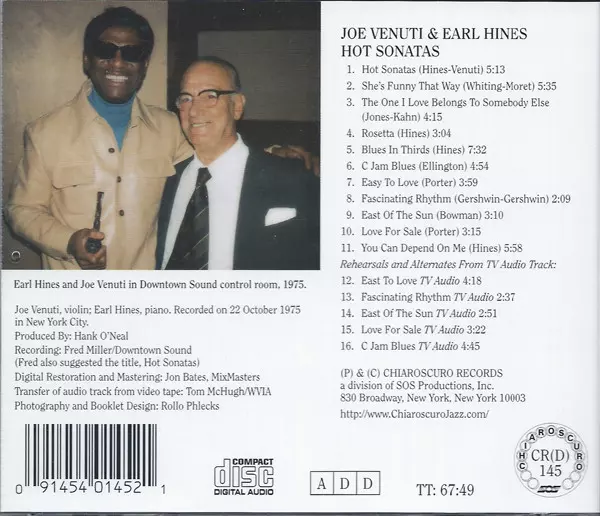 | Artist | Earl Hines | Joe Venuti |
