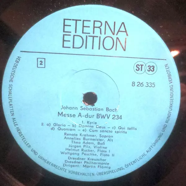 | Artist | Johann Sebastian Bach | Annelies Burmeister | Dresdner Philharmonie | Theo Adam | Dresdner Kreuzchor | Martin Flämig | Renate Krahmer |