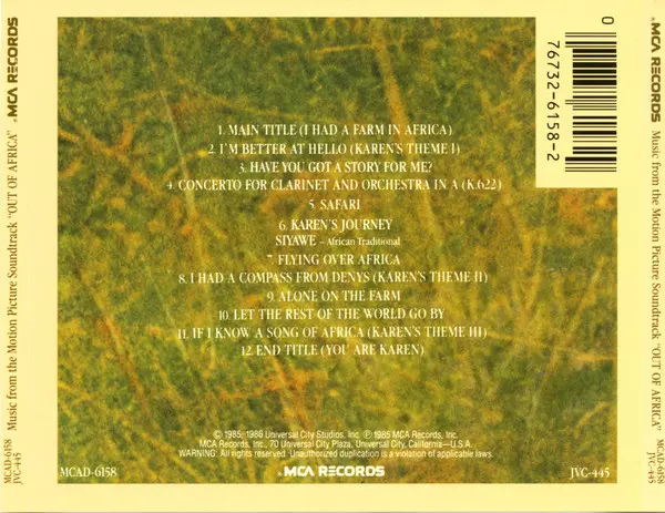 | Title | Out Of Africa (Music From The Motion Picture Soundtrack) |