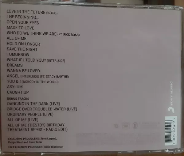 John Legend: Love In The Future version on CD in Standard edition. This particular edition was published in Europe in publishing company G.O.O.D. MUSIC in cooperation with Columbia and Sony Music on 11. November 2014. Album spans genres Pop, Funk / Soul, Balad, Neo Soul and Contemporary R&B. Special Edition.