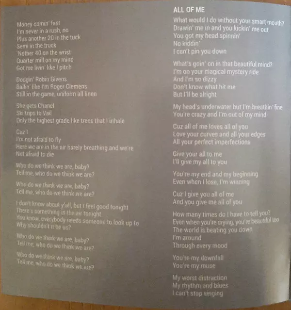 Co-producer Kanye West | Drum Programming Nana Kwabena | Engineer Dave Tozer, Jason Agel | Engineer [Assistant] Dave Rowland | Keyboards Andrew Horowitz | Lead Vocals, Backing Vocals John Legend | Mixed By Dave Tozer | Producer Hit-Boy | Producer [Additional], Keyboards, Drum Programming Dave Tozer | Written-By Chauncey Hollis, Ingrid Michaelson, James Fauntleroy II, John Stephens (3), Kanye West, Sara Bareilles