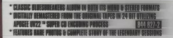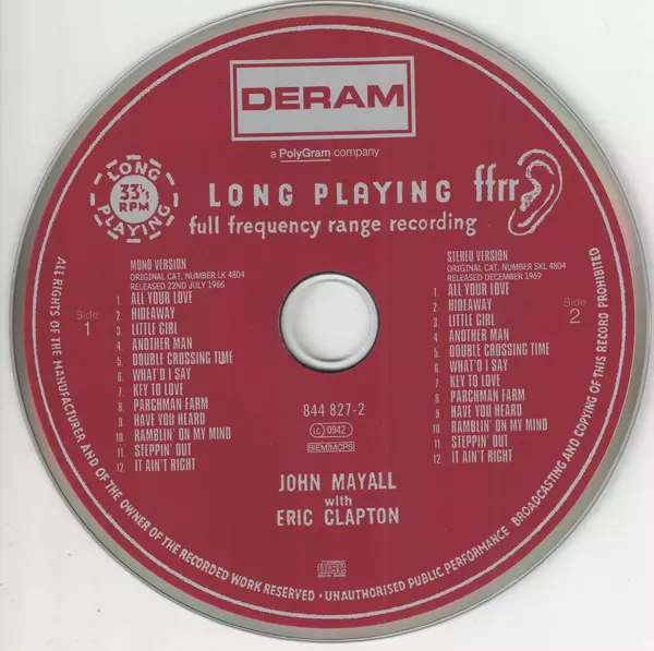 John Mayall: Blues Breakers version on CD in Remastered edition. This particular edition was published in Europe in publishing company Deram on 3. July 2006.