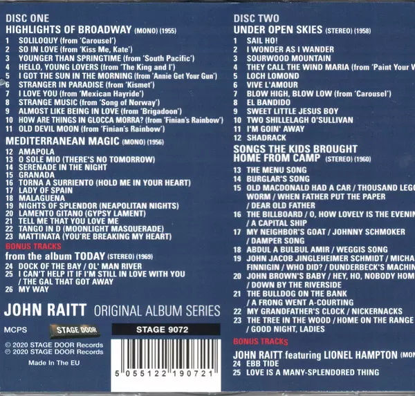 John Raitt: Original Album Series version on 2CD in Standard edition. This particular edition was published in Europe in publishing company Stage Door Records on 24. April 2020. Album can be classified in the genre Stage & Screen.