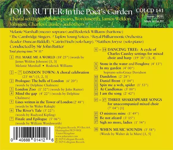 | Artist | Royal Philharmonic Orchestra | John Rutter | Roderick Williams | The Cambridge Singers | Catrin Finch | Melanie Marshall | Taplow Young Voices |