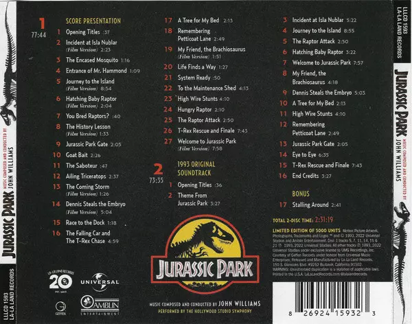 | Title | Jurassic Park (Remastered And Expanded Original Soundtrack) LTD |