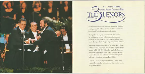 A legendary concert with the best tenors of all time They made history as the most famous singing trio in the world: Three tenors José Carreras, Plácido Domingo and Luciano Pavarotti. Their most famous album was recorded in Los Angeles in 1994 on the occasion of the World Cup. It recorded huge chart successes and is considered the most haunting ...