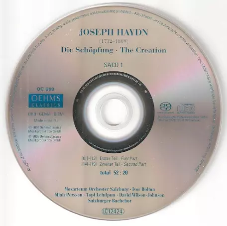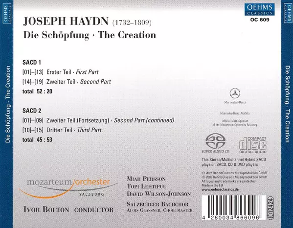 | Artist | Joseph Haydn | David Wilson-Johnson | Topi Lehtipuu | Das Mozarteum Orchester Salzburg | Miah Persson | Ivor Bolton | Salzburger Bachchor |