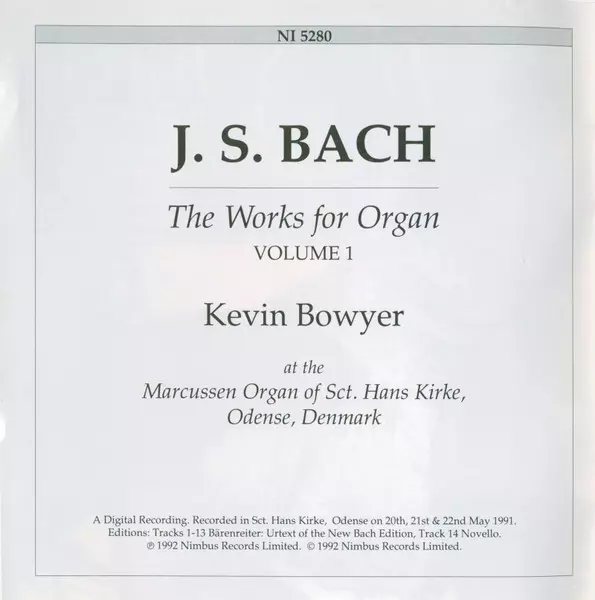 | Artist | Johann Sebastian Bach | Kevin Bowyer |