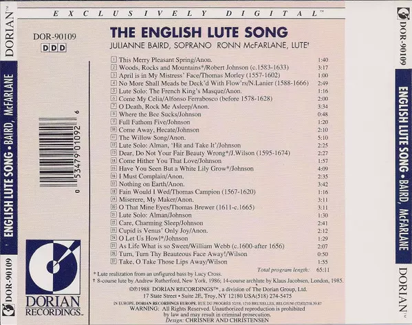| Artist | Ronn McFarlane | Julianne Baird |