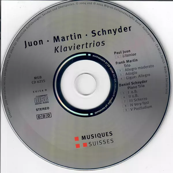 | Artist | Frank Martin | Paul Juon | Daniel Schnyder |