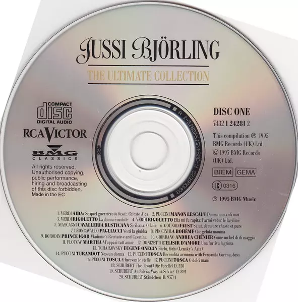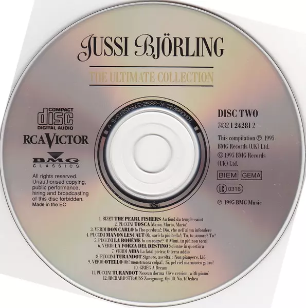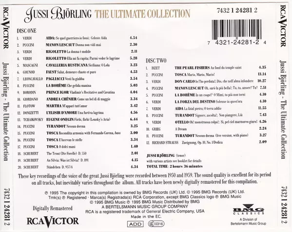 Jussi Björling: The Ultimate Collection version on 2CD in Remastered edition. This particular edition was published in United Kingdom in publishing company RCA Victor in cooperation with BMG Classics on 31. March 1995. Album can be classified in the genre Classical.