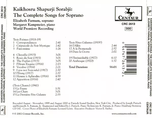 | Artist | Kaikhosru Shapurji Sorabji | Margaret Kampmeier | Elizabeth Farnum |