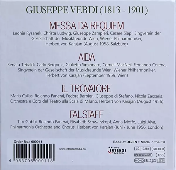| Title | Aida, Il Trovatore, Falstaff, Requiem |