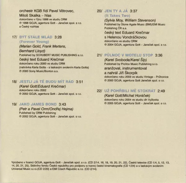 This album is a compilation of Karel Gott 's greatest hits from the last 50 years. It includes old classics like "So Give Me Your Phone" and "That's What I Like" as well as newer hits like "Love, Is Love". The album is a great representation of Gott's career and contains some of his most iconic songs.