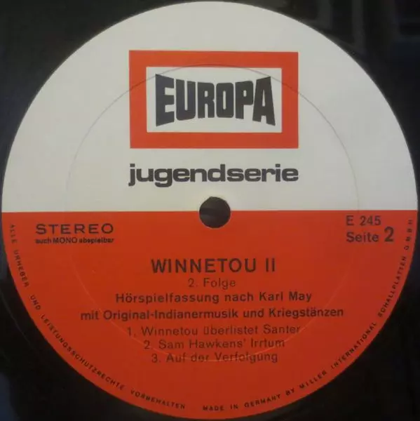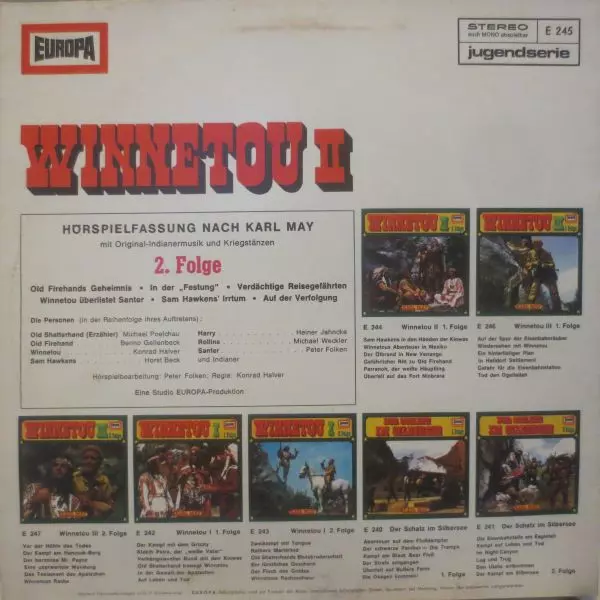 Karl May: Winnetou II 2. Folge version on vinyl LP in Standard edition. This particular edition was published in Germany in publishing company Europa year 1968. Album spans genres Non-Music and Radioplay.