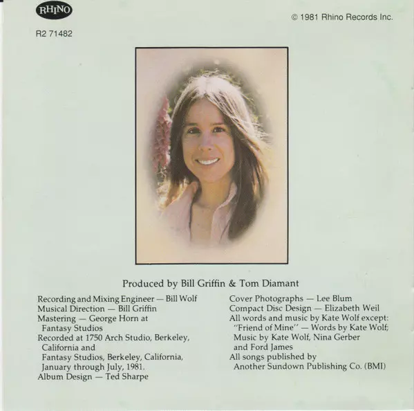 Drums Tom Lackner | Electric Bass Ford James | Harmony Vocals Tony Rice | Harmony Vocals, Piano Bill Griffin | Lead Guitar Nina Gerber | Pedal Steel Guitar Peter K. Siegel | Vocals, Guitar Kate Wolf