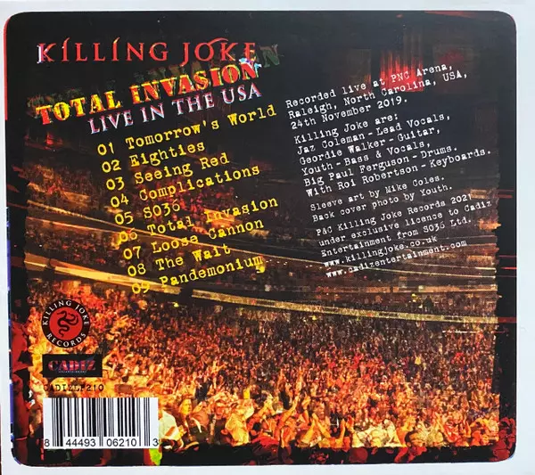 Killing Joke have been known for their ferocious, uncompromising and electrifying studio recordings since their debut more than 40 years ago. In doing so, Jaz Coleman and co. have earned a well-deserved reputation for bringing a sonic force forged from fire, brimstone and magic to the stage. Total Invasion - Live In The USA was recorded on Novem...
