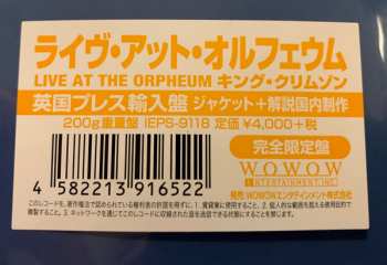 Live at the Orpheum contains 41 minutes of music recorded by the latest rebirth of the band, led by an impressive line-up of three drummers. Live at the Orpheum was mixed from the band's 24-bit multi-track tapes recorded at two Los Angeles shows. The material is a mix of old and new King Crimson songs, some of which were played live for the firs...