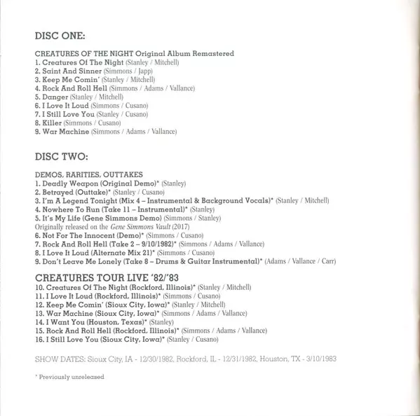 | Title | Creatures Of The Night 40th Anniversary Remaster DLX | LTD | DIGI |