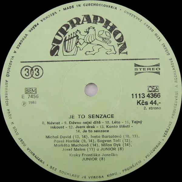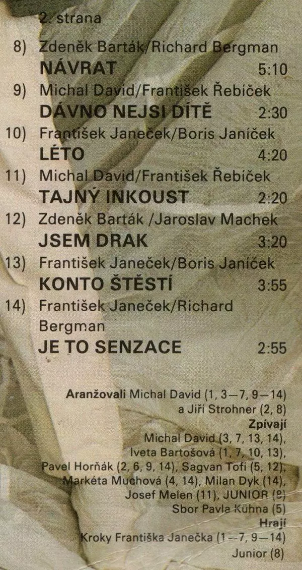 | B7 | Michal David, Pavel Horňák, Milan Dyk, Markéta Muchová: Je To Senzace | 2:55 min |
