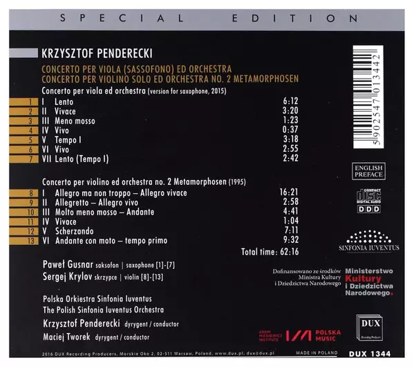 | Artist | Krzysztof Penderecki | The Polish Sinfonia Iuventus Orchestra | Maciej Tworek | Sergei Krylov | Paweł Gusnar |