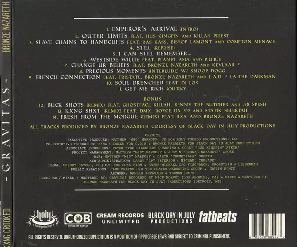 | Labels | Holy Toledo Productions | COB Circle Of Bosses | Cream Records Unlimited | Black Day In July Productions | Fatbeats Records |