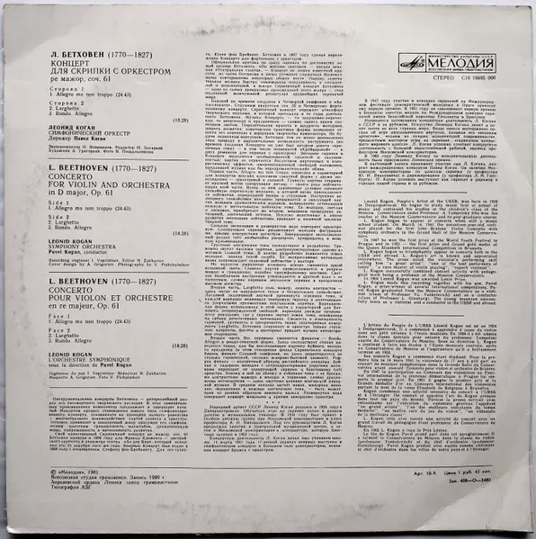 Artist | Ludwig van Beethoven | Leonid Kogan | Pavel Kogan |