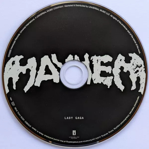 Lady Gaga: Mayhem = メイへム DLX | LTD version on CD in deluxe limited edition. This particular edition was published in Japan in publishing company Interscope Records in cooperation with Streamline Records on 14. March 2025. Album spans genres Rock, Pop, Electronic, Funk / Soul, Balad, Art Rock, Electro, Synth-pop, Dance-pop and Nu-Disco. Deluxe Limited Edition.