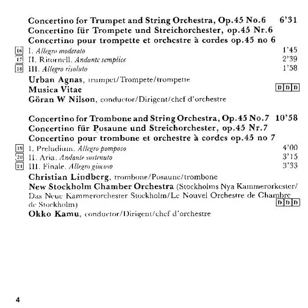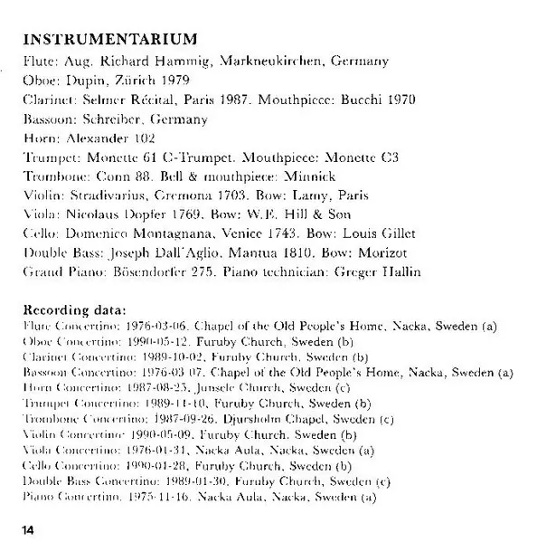Lars-Erik Larsson: Twelve Concertinos, Op.45 version on 2CD in Standard edition. This particular edition was published in Scandinavia in publishing company BIS on 21. February 2003. Album spans genres Classical and Neo-Classical.