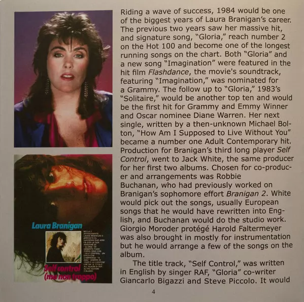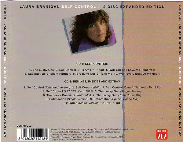 Laura Branigan: Self Control version on 2CD in Remastered edition. This particular edition was published in Europe in publishing company Cherry Pop on 5. June 2020. Album spans genres Pop, Electronic, Pop Rock and Synth-pop. 2 Disc Expanded Edition.