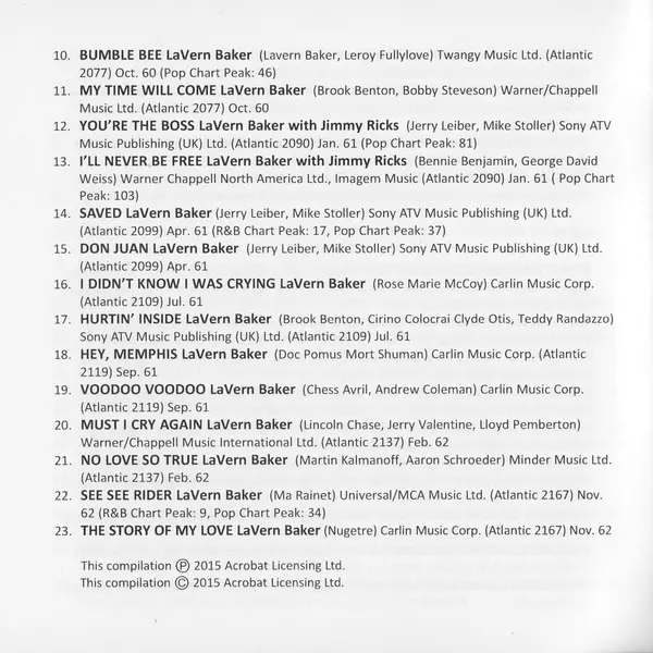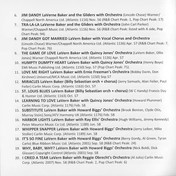 | 2-15 | LaVern Baker, Howard Biggs Orchestra: Substitute | 2:18 min | |