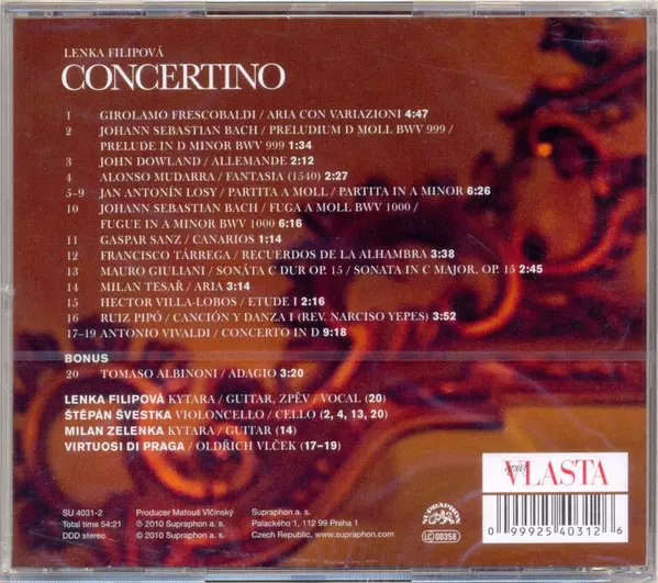 Lenka Filipová Concertino from 1990 is an album of classical music on which Filipová plays the violin. The album was recorded when Filipová was only eighteen years old and shows her violin talent. All of the pieces on the album are classical pieces and range in difficulty from easy to advanced. Filipova's playing is precise and emotive, and she ...
