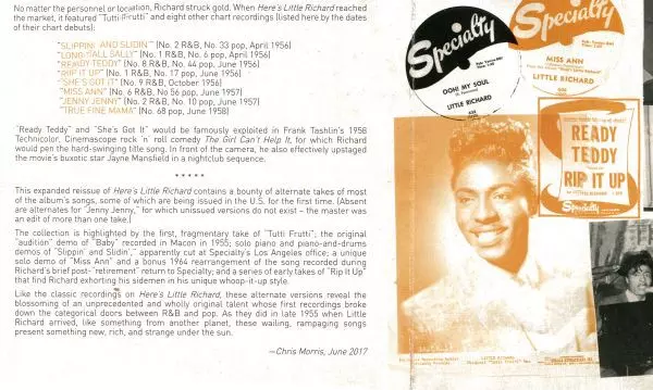 Little Richard: Here's Little Richard DLX version on 2CD in deluxe edition. This particular edition was published in USA in publishing company Craft Recordings in cooperation with Specialty on 10. November 2017. Album spans genres Rock, Blues, Rhythm & Blues and Rock & Roll. 60th Anniversary Deluxe Edition.